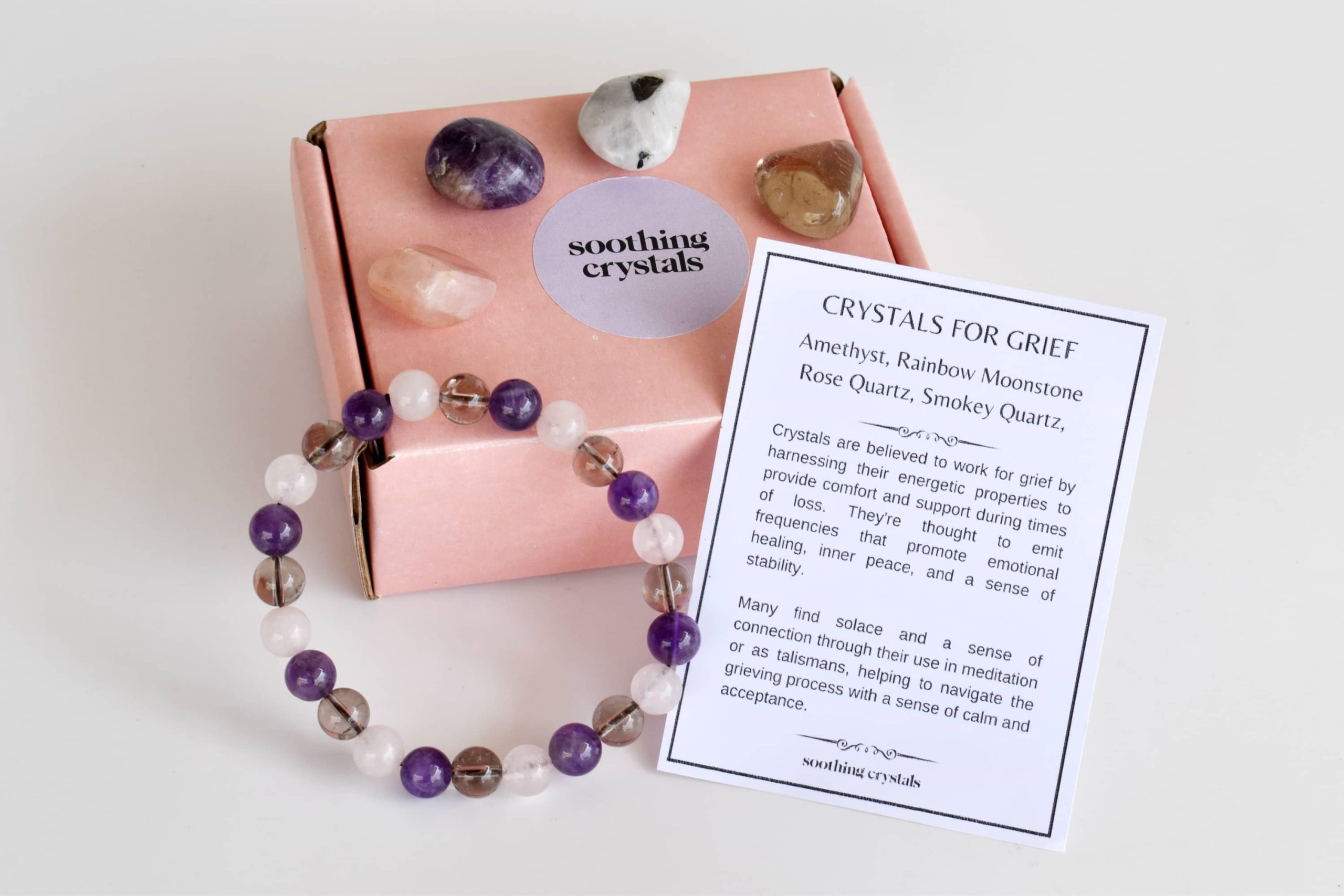 💕This Is An GRIEF Support Crystal Set Of 4pcs Tumbled Stones & 8mm Beaded Round Bracelets💕